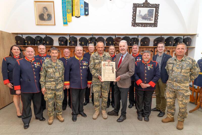 Verleihung der Ehrenmitgliedschaft an den Kommandanten der Theresianischen Militärakademie. Generalmajor Karl PRONHAGL im Beisein unseres Protektors und Oberst, Bürgermeister Mag. Klaus Schneeberger.