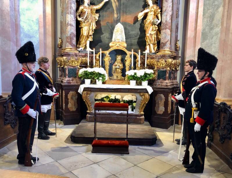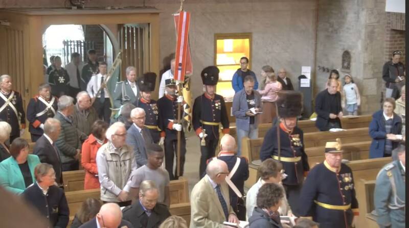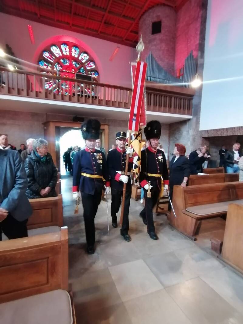 Fahnenabordnung für die Gedenkmesse von Militärbischof Dr. Kostelecky in der Georgskirche